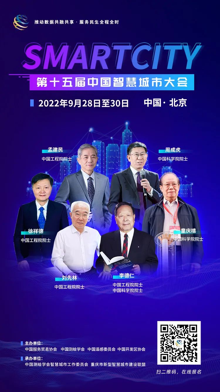 在此宏观背景之下,由中国服务贸易协会、中国测绘学会、中国遥感委员会、中国开发区协会主办的第十五届中国智慧城市大会,即将于2022年9月28日至30日在北京隆重召开。