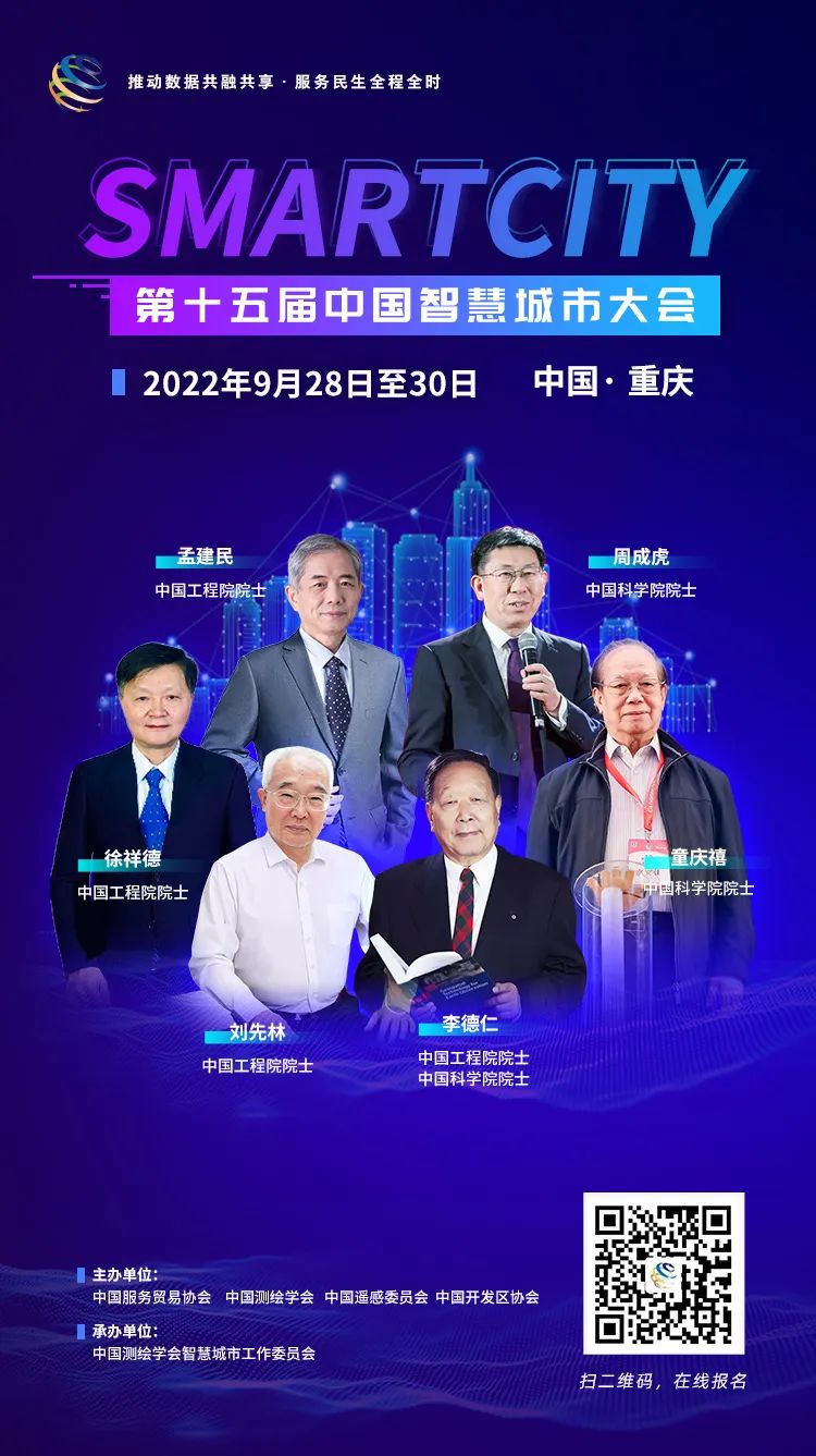 在此宏观背景之下,由中国服务贸易协会、中国测绘学会、中国遥感委员会、中国开发区协会主办的第十五届中国智慧城市大会,即将于2022年9月28日至30日在重庆隆重召开。