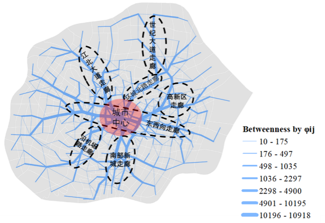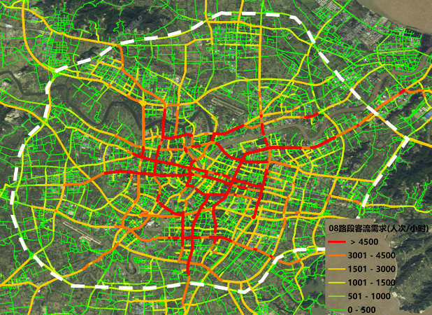 图9.公交线路走廊和实际客流分布比较