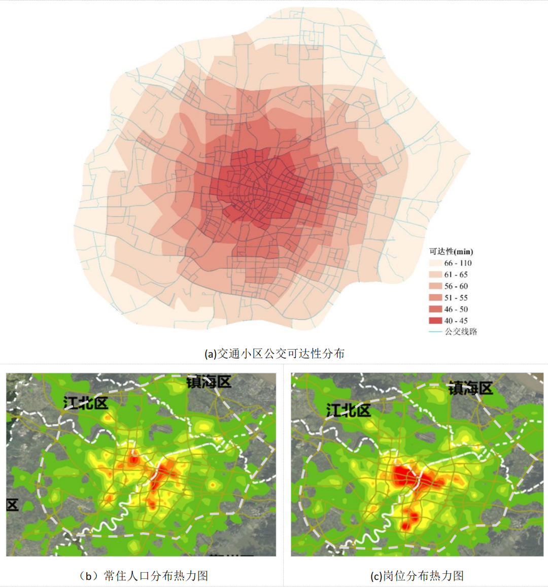 图8.公交可达性分布与人口岗位分布比较