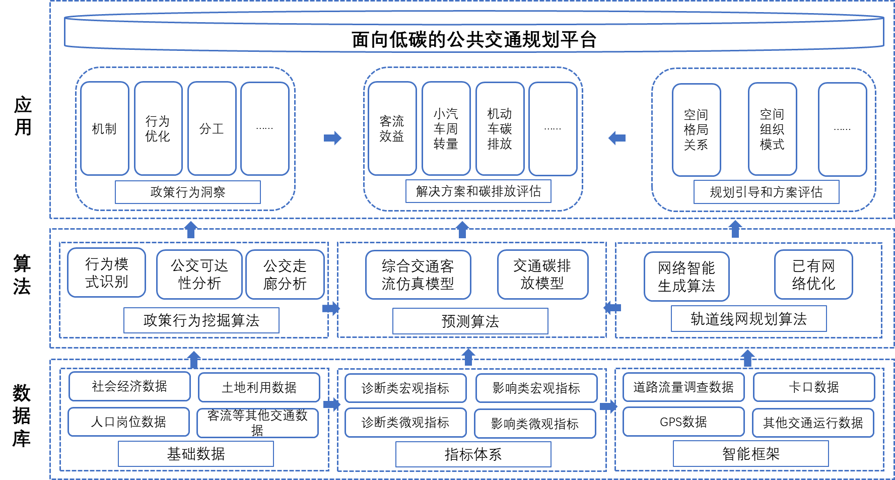 整体研究架构可分为数据库、算法层和应用层三个层次: