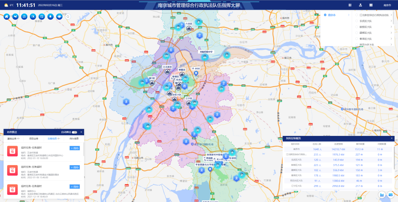南京城管执法信息化指挥调度系统(精靓系统)全面覆盖综合行政执法业务需求,实现业务融合、一张图指挥、执法业务闭环、数据可视化的城市精细化管理模式,该系统作为行政执法管理指挥中枢,已经成为城市治理综合系统。