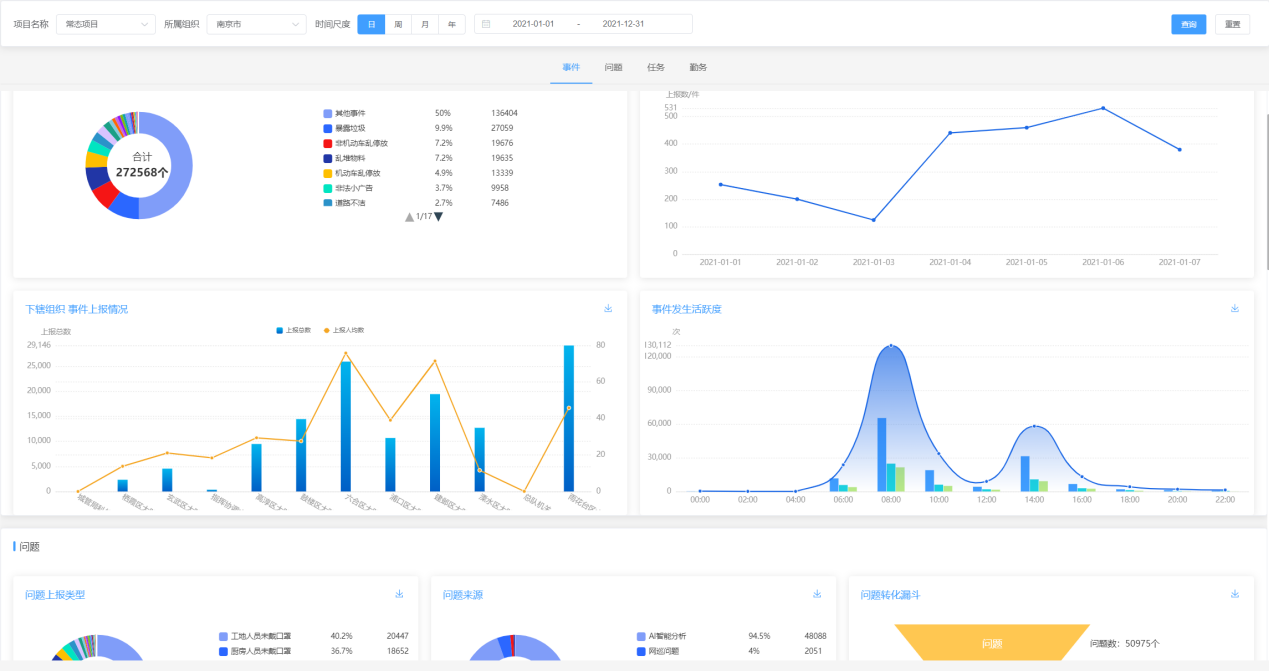 截至2021年底,精靓系统累计上报问题处理事件272589条,各类任务6500余条。