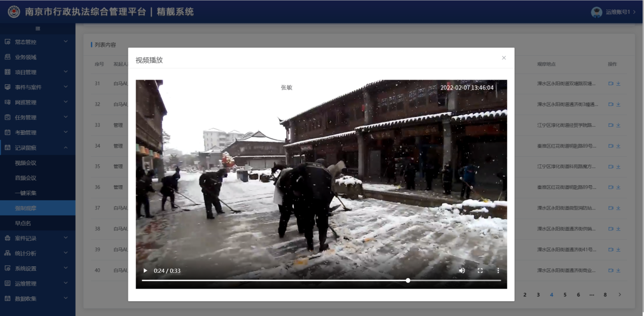南京市正式城管执法人员和50%以上的协管员已经全部配备4G执法记录仪,2021年系统平均每天上线2230人,上线率为33.26%,在编人员在线率达95%以上,执法全过程记录视频134498条。执法全过程记录倒逼执法规范化,同时也保护了执法人员,切实保障人民群众合法权益,维护政府公信力,营造更加公开透明、规范有序、公平高效的法治环境。