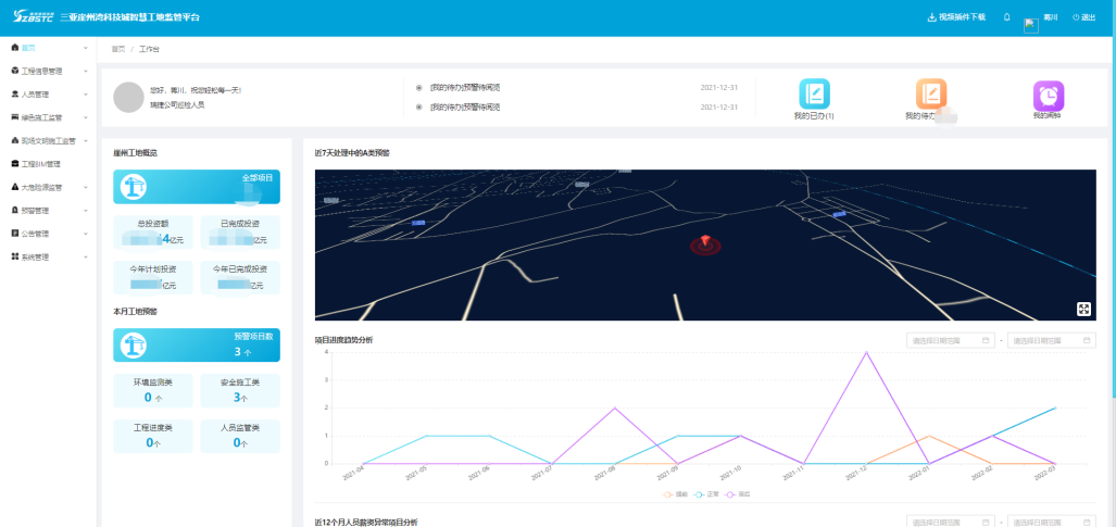 工地监管工作做为崖州湾科技城管理局的重要职能,为满足科技城的发展规划以及未来几年建设高速发展期的需求,我们对智慧工地监管平台项目在监管深度和创新能力方面作出全面提升,实现对在建工程项目全过程、全空间、全方位的立体化监管。“AI赋能、科学监管”、“统一入口、多端融合”是智慧工地监管平台相对于传统工地监管平台的创新体现。