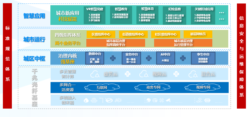 智慧应用建设主要包括党建、教育、体育等部门应用场景,以及三个关键区域的智慧治理应用,以智慧化手段赋能城区治理,逐步形成具备体系化的场景运营能力。