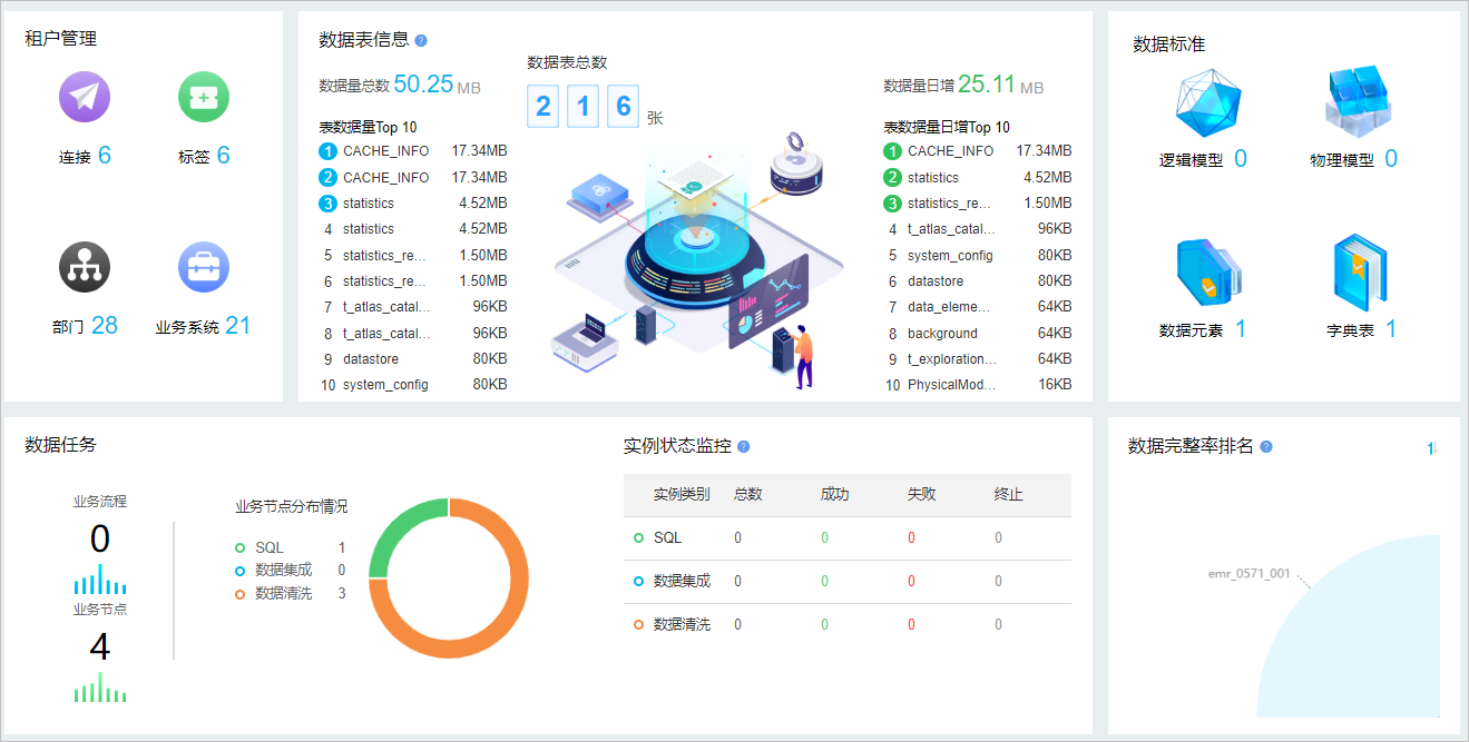 建立完善的大数据治理与质量管控体系,持续提升龙岗区的数据资源质量,对所有数据开展全面的数据质量评估和数据清洗,汇聚数据开发利用全过程的元数据信息,提高数据可读性和实现数据全过程血缘追溯;开展数据开发、数据评估、数据标准化、数据清洗等治理活动,通过配置的质量检测规则库对数据进行质量评估和质量监控,业务需求拉动标签开发增强数据的应用价值。