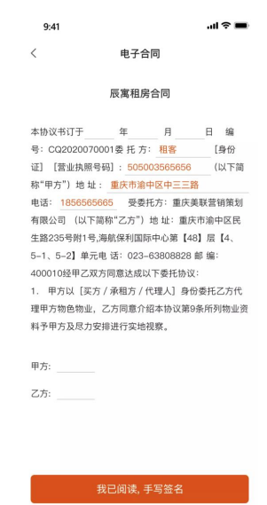 图10:辰寓APP内合同预览 图11:辰寓APP内合同在线签约
