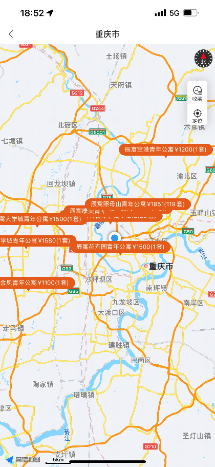 在辰寓住房租赁智能运管平台体系里面,租客可以通过“辰寓”公众号或者小程序便捷查看辰寓旗下所有在租房源信息,包括门店名称、房间价格、所处位置、交通情况等租客第一眼关心的信息,同时利用H5技术融合常见地图功能,使得用户对感兴趣的门店可以直接“一键导航”,极大提高租客现场看房的欲望。