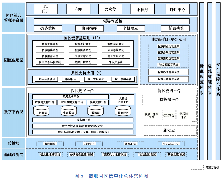 项目建设的技术架构包括基础设施层、传输层、数字平台层、智慧应用层、运营管理平台(见图2)。