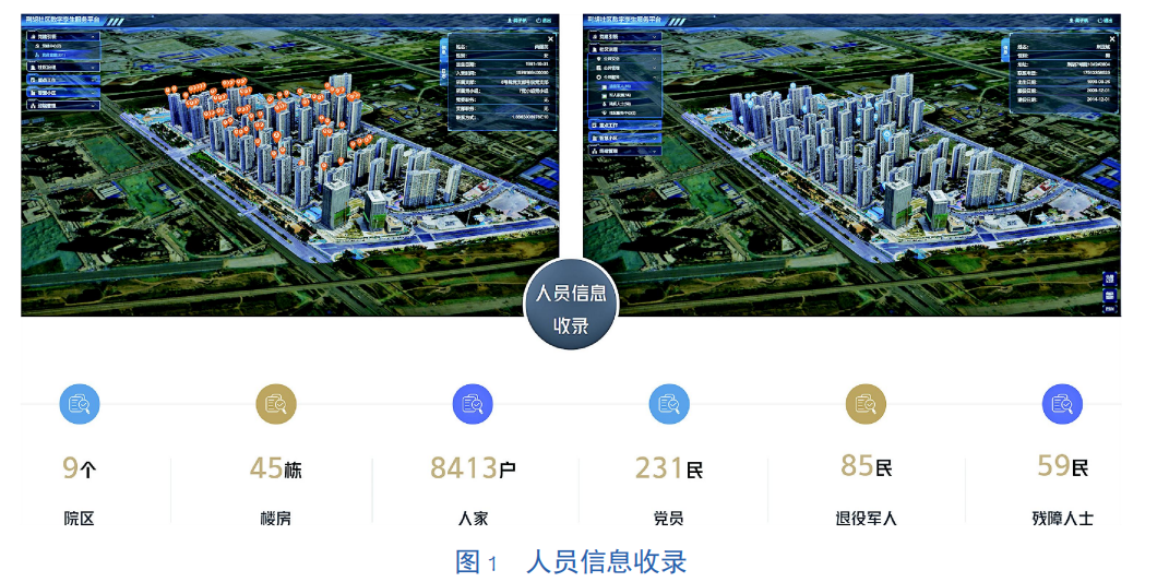 GIS数字孪生系统,以荆胡社区三维数字沙盘为基础,将社区关注的“人事物”等信息全部落图,构建一个与真实世界相映射的孪生世界。通过布设的智能感知设备(传感器)对真实世界中“事物”的运行状态等信息收录并展示于孪生系统中,达到对荆胡社区的实时监控、信息收录、精确管理和科学决策等,形成社区风险防控一张网(见图1~图3)。