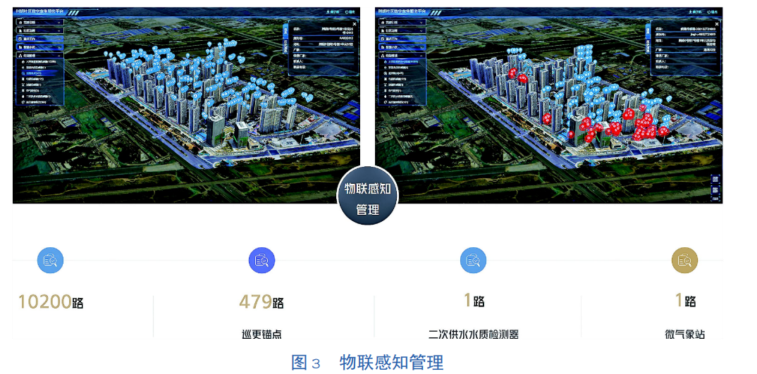 这一张屏即是“物联网数据管理大屏系统平台”,与GIS数字孪生系统共享数据源,能够更加直观、智能化地展示收集到的各类数据,构建集监控、预警、诊断、分析一体化的可视化数据平台(见图4)。