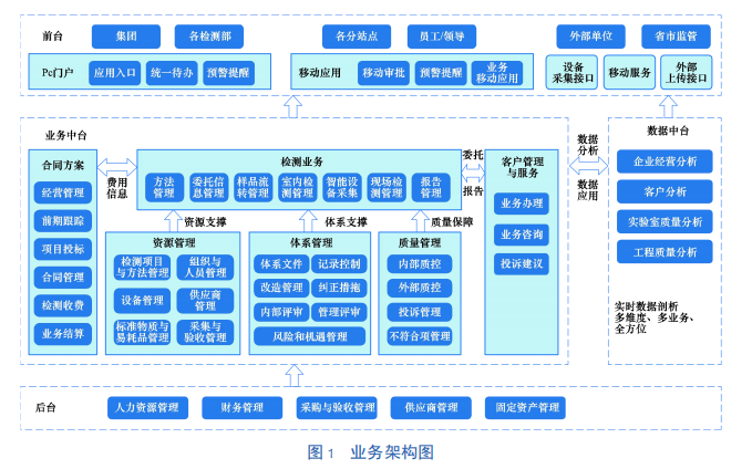 2)一体联通关联度高、信息重合的职能部门,进行数据互联,实现管理流程模块化、节点化、标准化,达到将经营活动、检测管理、协调办公、高效服务等全过程统一管理。