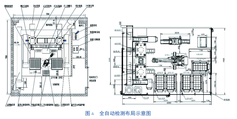 将图像识别技术、物联网、自动化物料传输系统、自动化技术、智能控制技术、智能机器人等技术应用于传统混凝土试块强度检测、混凝土芯样抗压强度检测、混凝土抗渗检测、钢筋拉伸检测等,构建一种常用检测项目全自动智能检测系统及检测方法,使得检测过程管控更为智能化更为精细化,以此大幅提升检测效率,保证检测质量。全自动检测布局示意图如图4所示。