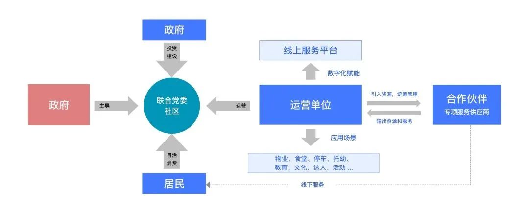 秉承社会参与、居民自治、共享收益的理念,政府与运营单位联合构建主体开展数字化运营。聚焦未来社区九大场景,积极投入专业服务力量和公共资源,依托未来社区全域平台设计运营服务闭环和多方分配规则,从而提升服务品质,增强运营收益,塑造长效运营模式。提供社区数字化运营服务,辅助各街道为主体完成人房空间资产等基础数据的“社区治理、区级整合和省级贯通”,技术上采用装配式完成未来社区五大标配场景应用的快速搭建和四项推优场景应用的共建共享。数字化运营服务,将持续支持并探索政府酬金制的运营模式向市场化运营的模式转变。