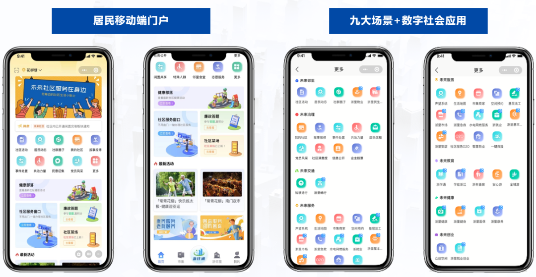 未来社区全域平台始终坚持“统一规划、共享建设”的理念,并在此理念指导下创新了未来社区的构建方式。考虑了资源利用率和效益最大化,有效避免了重复投资和资源浪费,并提高了项目效率。在提供标准化社区应用的同时,也鼓励并支持进行社区个性化应用开发,以满足居民的定制化需求,保障社区服务的多样性。有效平衡了平台标准的统一性和应用服务的可扩展性,兼顾了创建工作推进的高效性和服务的丰富性。