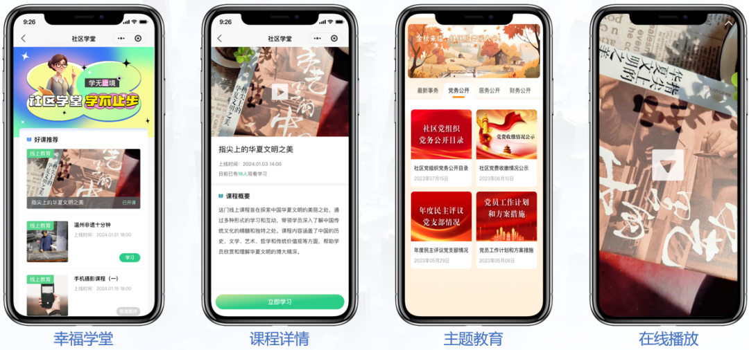 6)未来教育场景建设:主要包括建设教育积分、全民学习数据治理、融通线上线下结合学习等功能。实现居民对工作后的继续学习认同度的地提高,解决社区居民参与社区教育的学习日益增长的需求。