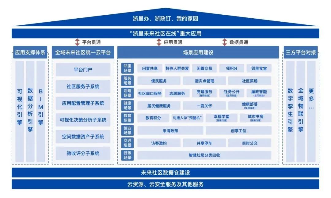 "未来社区全域平台"不仅提高了社区管理的效率,丰富了社区服务的内容,还有效地推动了社区经济循环和发展,打造更美好的未来社区生活环境。全域平台在未来社区创建和实现省、市、区、街、社区的五级贯通过程中沉淀和总结了一批创新的实践的经验。