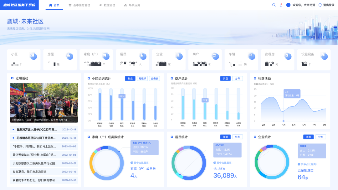 4)未来健康场景建设:主要包括建设一鹿关怀模块并对接智慧健康站,实现独居老人居住情况智能分析,加强社区对独居老人的关怀。