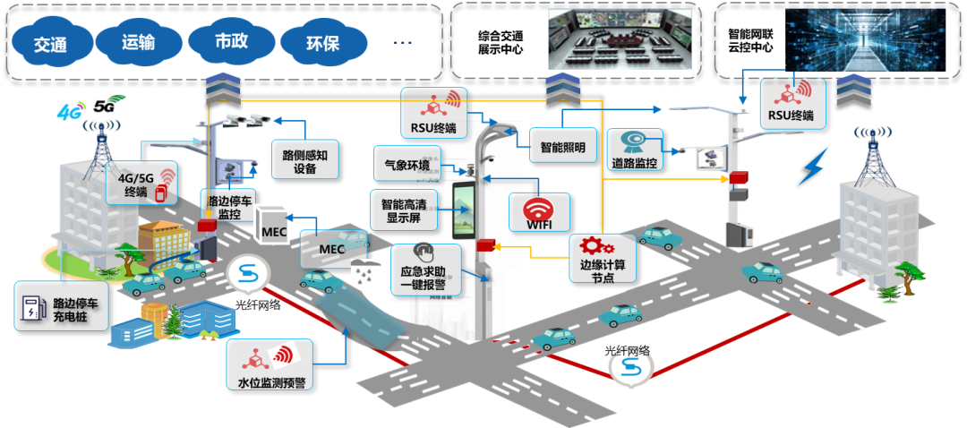 基于智慧灯杆构建包括C-V2X系统、通信系统、感知系统、边缘计算系统、微气象和道路环境系统,实现智能交通与智慧城市的深度融合。