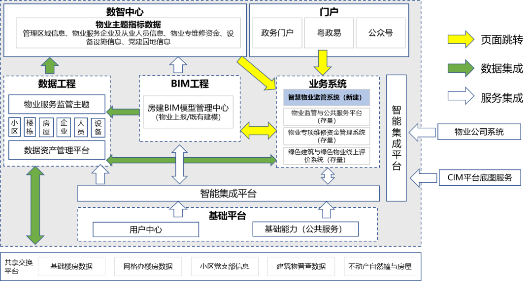 图8 系统集成一体化建设示意(以智慧物业监管系统为例)