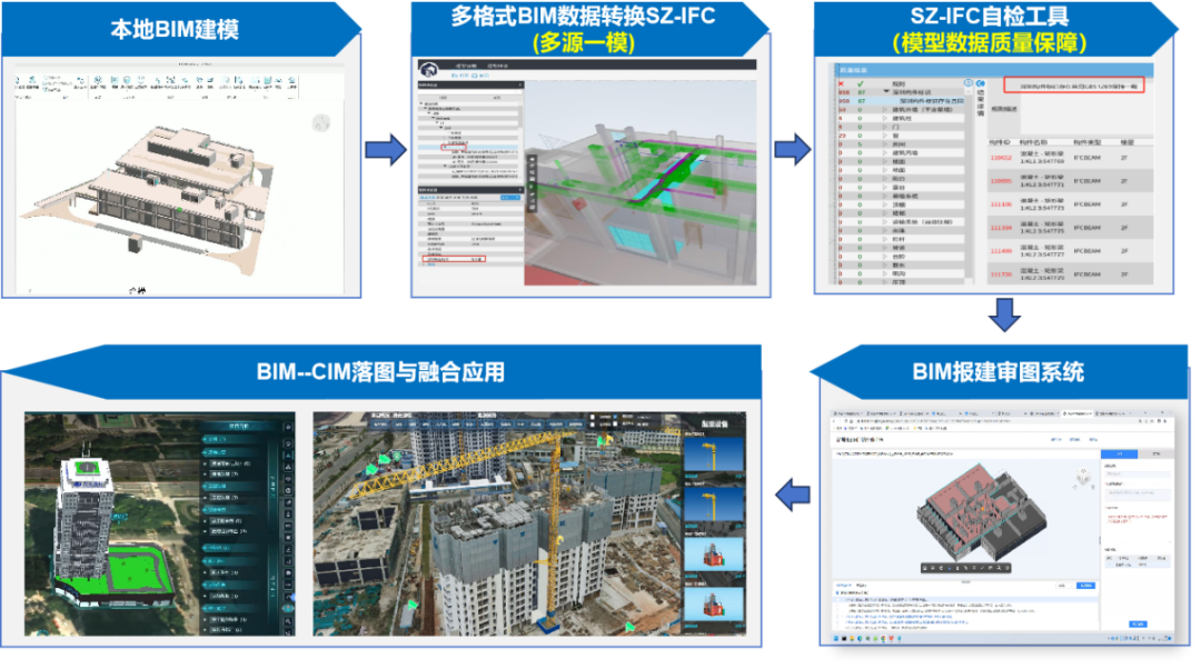 从单一应用到全流程覆盖的BIM支撑。跳出当前BIM技术多聚焦于施工图审查、竣工验收等应用的局限性,成为全国首个基于SZ-IFC格式,实现BIM模型收、存、管、用的全流程应用模式探索的城市,通过统一集约的组件管理、统一灵活的接口调用,创新打造高效集成的BIM技术支撑和应用服务中台,全面支撑BIM技术应用落地,为各地深化BIM管理及应用提供宝贵经验,如图10所示。