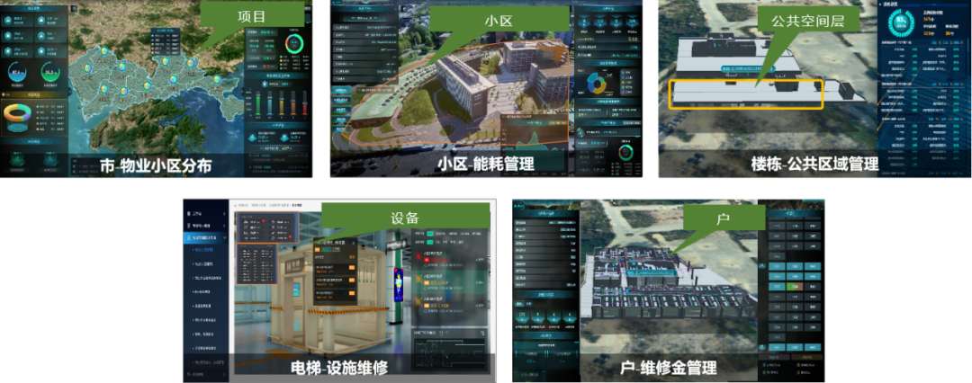 以物业监管专题为例,如图12所示,针对公共空间管理、设备资产管理、能耗管控等不同空间尺度下物业管理需求,利用BIM/CIM融合技术可视化、空间化、精细化优势,将重点关注的公共区域空间和重要设施设备与BIM模型进行关联,探索搭建小区安全运行、维修跟踪、能耗监测等智能化服务,实现物业小区智能监管,实现物业小区要素全生命周期信息追溯管理,综合提升物业监管水平。