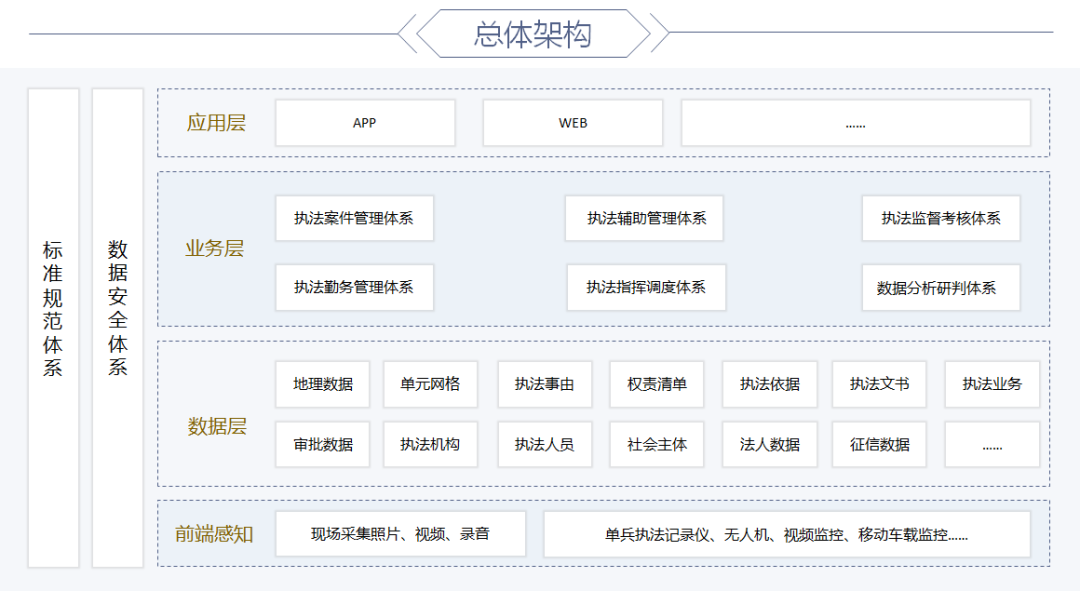 执法辅助管理体系是对执法过程提供丰富的辅助应用,可以随时随地、方便快捷地使用;主要包含执法应用维护系统、业务短信系统、执法AI智能助手、执法知识库系统、执法智慧笔录系统、执法数据交换等系统。