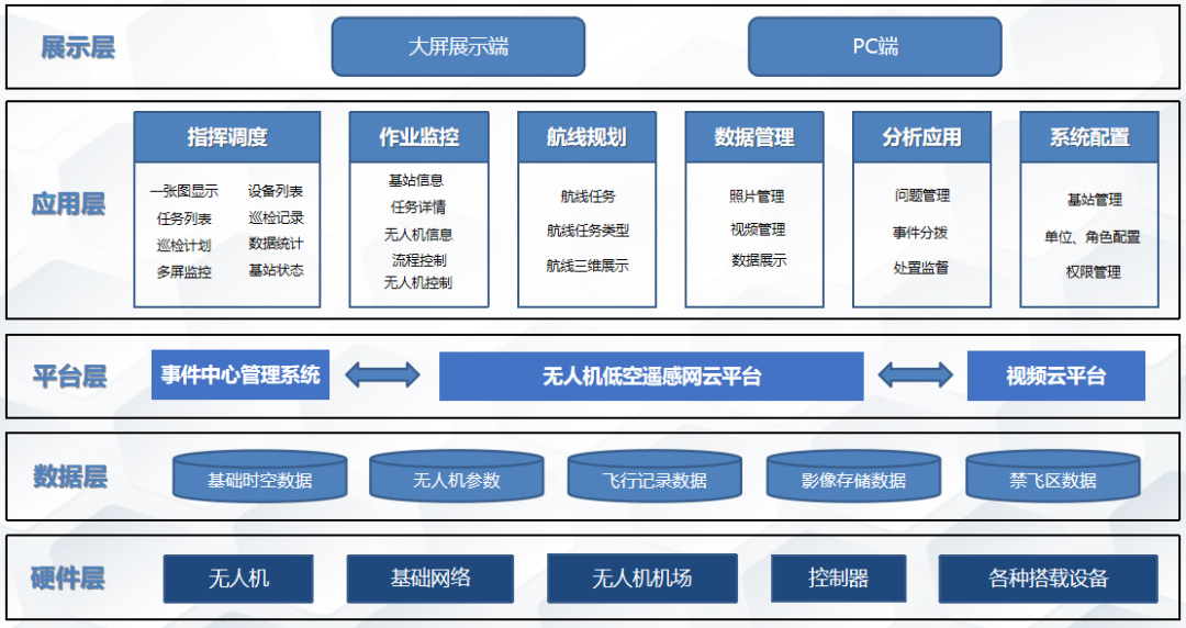为了便于对无人机设备进行综合管控,集成硬件、软件于一体的管理模式,打造无人机低空遥感网云平台。平台建设将以国家各类技术规范和业务要求为依据,采用业界成熟的解决方案,采用B/S架构模式,建立软件系统,层级之间功能解耦,增加了系统的可拓展性,提供良好的操作体验。