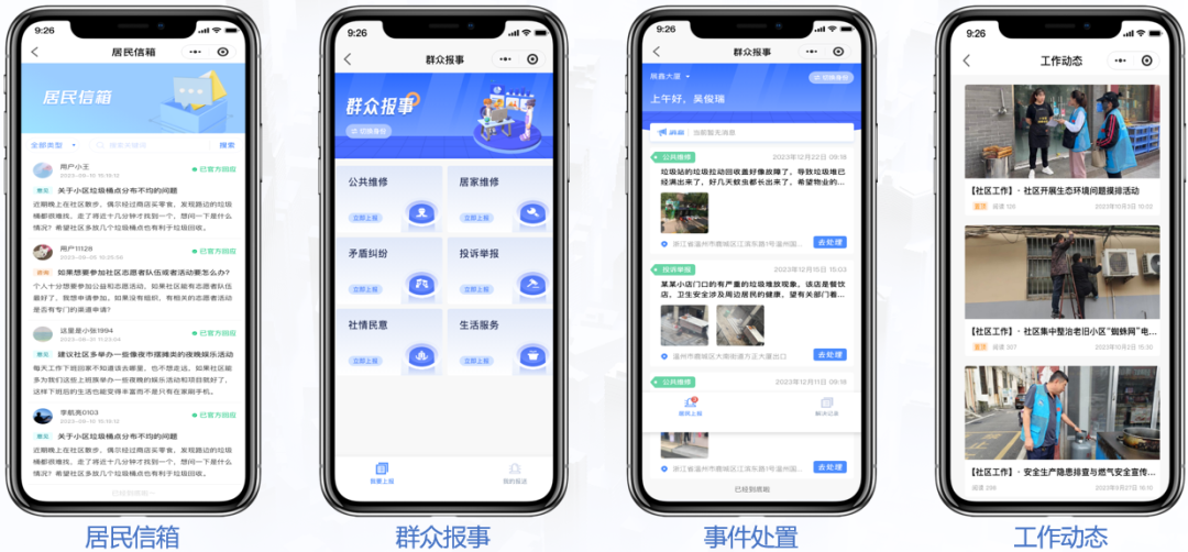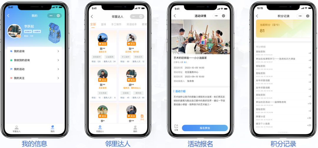 3)未来治理场景建设:主要包括群众自治以及志愿服务两大功能。实现架起社区与居民沟通桥梁,促进居民自治,提升居民主人公意识。