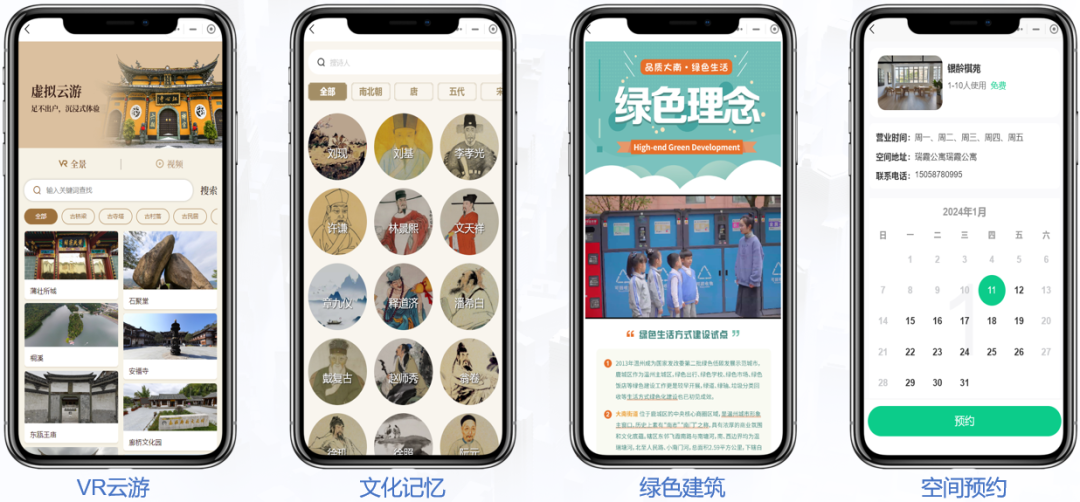 5)未来建筑场景建设:主要包括历史文化建筑导览导视、绿色建筑理念宣传、社区周边古建筑地标性建筑及社区楼宇设计可视化云展示。社区居民可以通过在线预约等线上方式进行预约游览、参观和公共开放空间的功能延伸使用,例如图书馆、美术馆、运动场馆等线上预约。