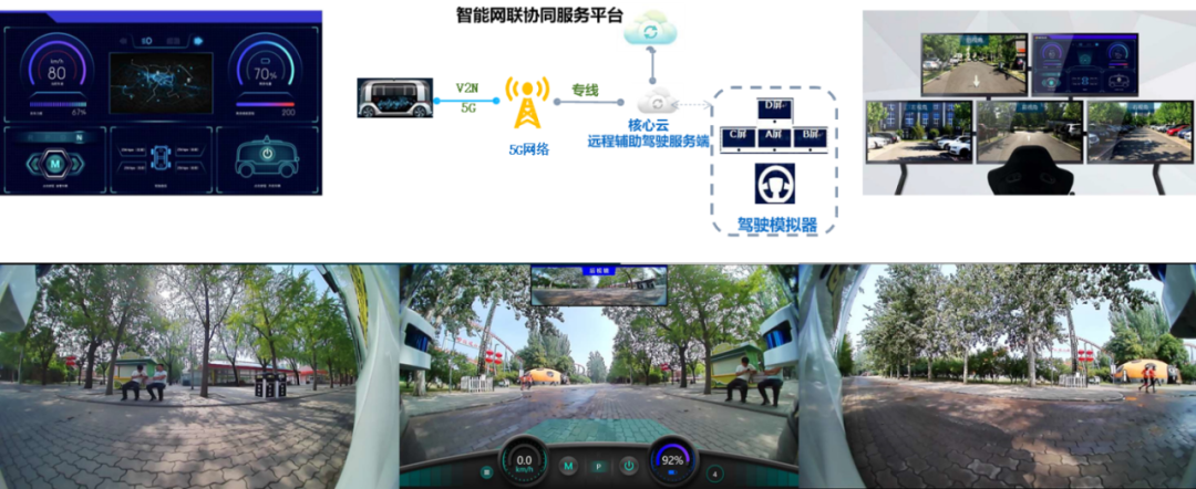 基于5G技术,与车辆底盘线控设备以及视频采集设备进行数据交互,实现对网联车的实时监测和管控。在监控中心发现L4级无人车有异常时,可人工接管车辆,通过远程驾驶将车辆行驶至安全地带;进一步提高可管可控、可视安全的运行支撑。