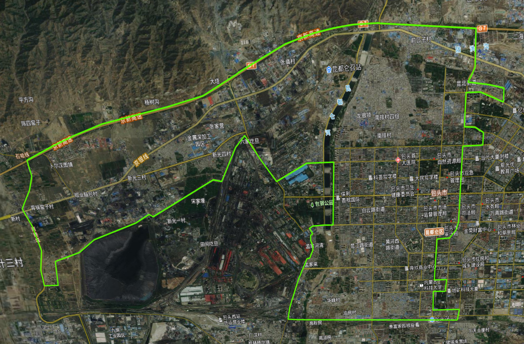 图 1 包头市昆都仑区110平方公里倾斜航空摄影范围示意图