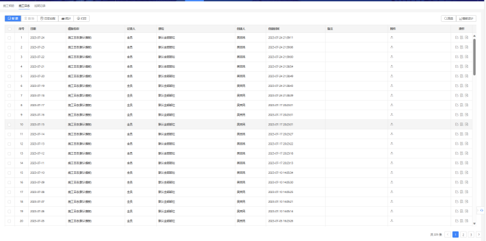 共计完成施工日志225篇,供管理人员随时调阅查看。