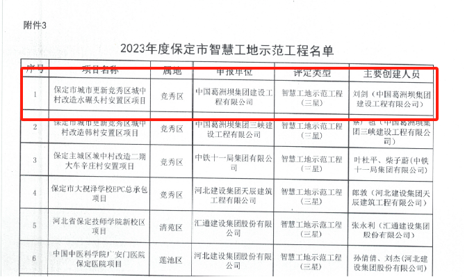 项目积极创建智慧工地示范工程,于2023年7月顺利通过河北省建筑协会专家组评审,被评定为河北省“三星级智慧工地”,2023年9月顺利通过保定市专家组评审,被评定为保定市“三星级智慧工地”。